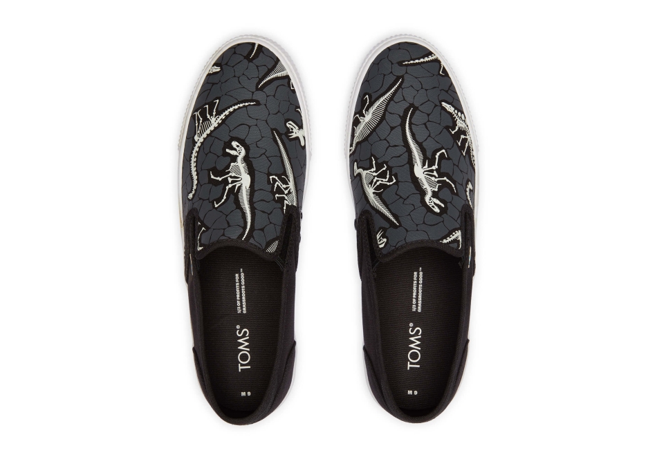Toms Baja Slip On Dinosaur Dig Black Dino